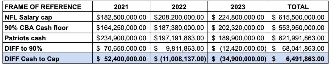 (Also, I'm going to point out that the Patriots ranked 17th in cash-over-cap spending from 2015-19, Brady’s final five seasons with the team.)