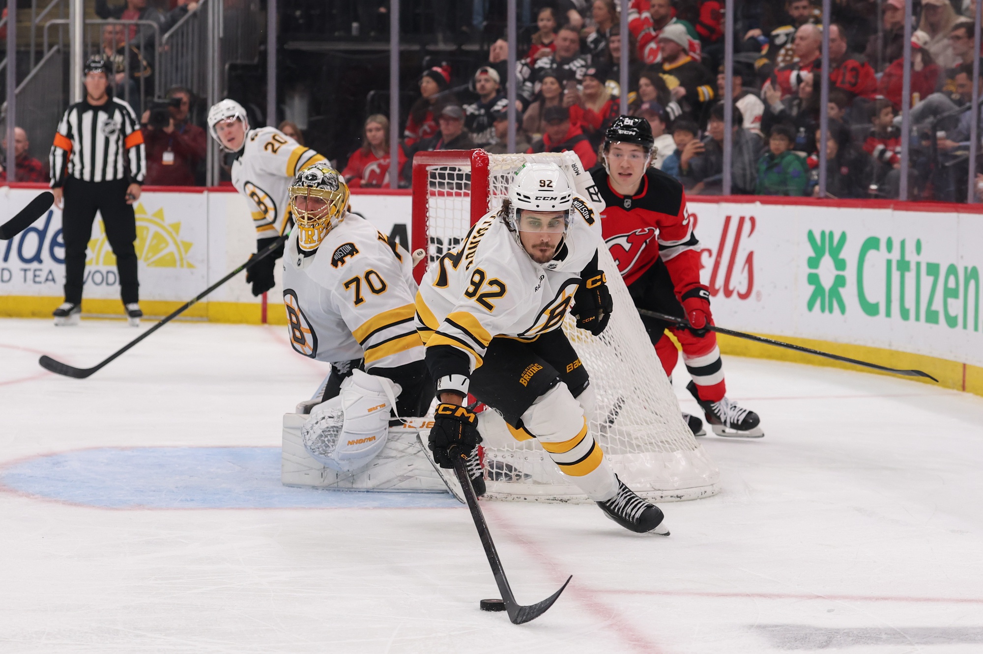 The Boston Bruins set out on this current, pivotal three game road swing hoping to bank at least three points out of an available six points while fighting to hold onto their current wild card playoff spot in the East. The Black and Gold accomplished that reasonable goal while ultimately falling in a 4-3 overtime decision to the New Jersey Devils at the Prudential Center on Monday night after blowing a 2-0 lead after the first period of play. Truthfully, David Pastrnak turned in a superstar performance to earn the B’s a point by scoring a pair of goals, including a toe drag beauty weaving through Devils defenders before beating Jakob Markstrom five hole with a backhanded bid.